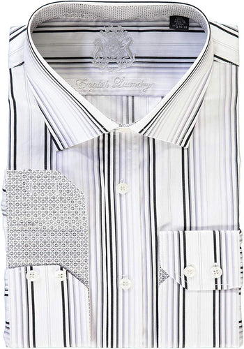 English Laundry White Black Gray Stripes Dress Shirt