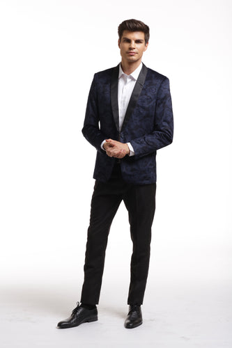 Elie Balleh Navy Paisley Dinner Jacket With Black Shawl Colllar