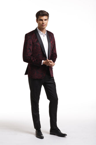 Elie Balleh Burgundy Paisley Dinner Jacket With Shawl Collar