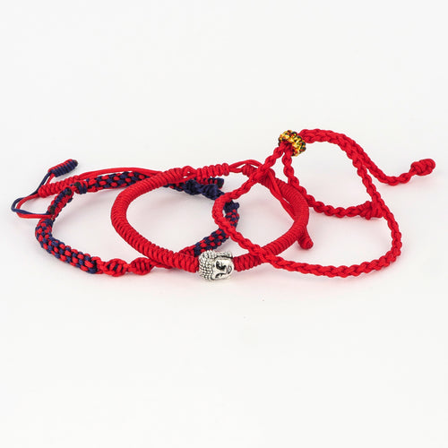 Jean Claude Triple Set of Handmade Tibetan Buddha Red Bracelets